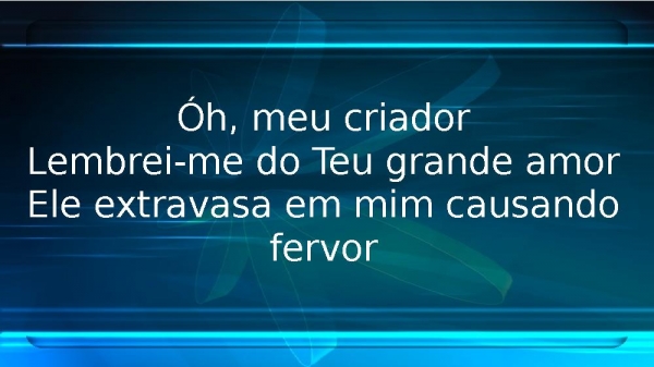 - Óh, meu criadorLembrei-me do Teu grande amorEle extravasa em mim causando fervor