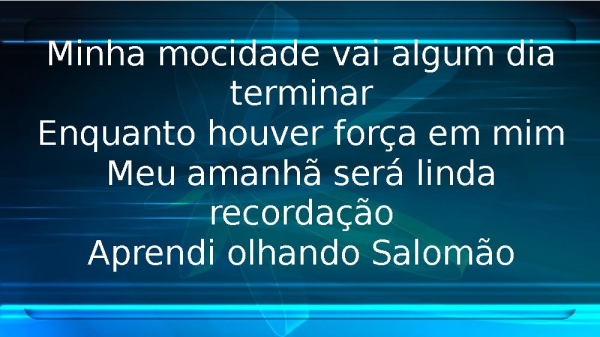 - Minha mocidade vai algum dia terminarEnquanto houver força em mimMeu amanhã será linda recordaçãoAprendi olhando Salomão