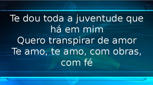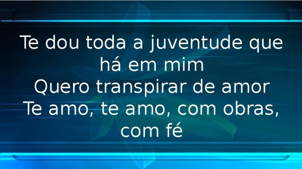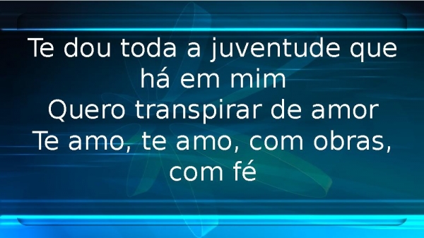 - Te dou toda a juventude que há em mimQuero transpirar de amorTe amo, te amo, com obras, com fé
