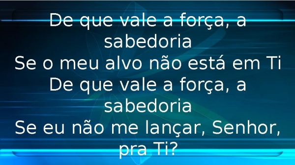 - De que vale a força, a sabedoriaSe o meu alvo não está em TiDe que vale a força, a sabedoriaSe eu não me lançar, Senhor, pra Ti?