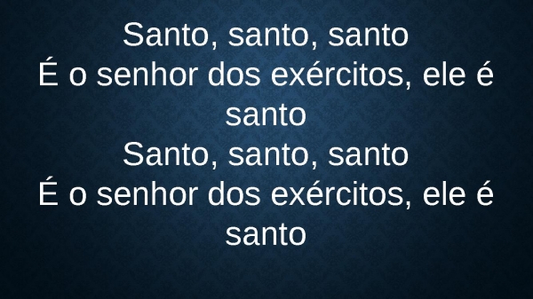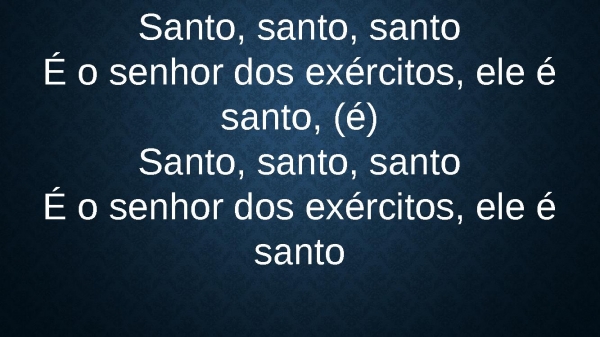 - Santo, santo, santoÉ o senhor dos exércitos, ele é santoSanto, santo, santoÉ o senhor dos exércitos, ele é santo