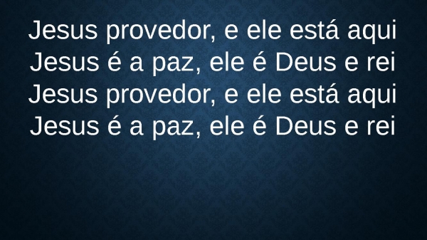 - Jesus provedor, e ele está aquiJesus é a paz, ele é Deus e reiJesus provedor, e ele está aquiJesus é a paz, ele é Deus e rei