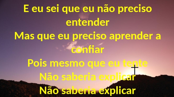 - E eu sei que eu não preciso entenderMas que eu preciso aprender a confiarPois mesmo que eu tenteNão saberia explicarNão saberia explicar