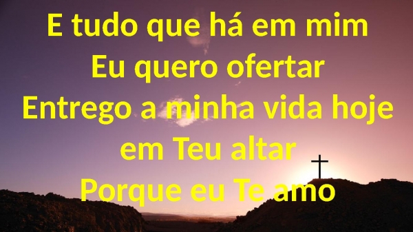 - E tudo que há em mimEu quero ofertarEntrego a minha vida hoje em Teu altarPorque eu Te amo
