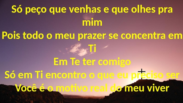 - Só peço que venhas e que olhes pra mimPois todo o meu prazer se concentra em TiEm Te ter comigoSó em Ti encontro o que eu preciso serVocê é o motivo real do meu viver