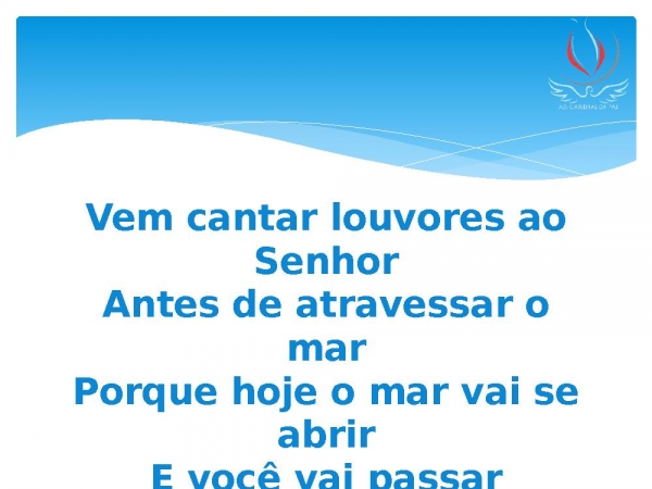 - Vem cantar louvores ao SenhorAntes de atravessar o marPorque hoje o mar vai se abrirE você vai passar