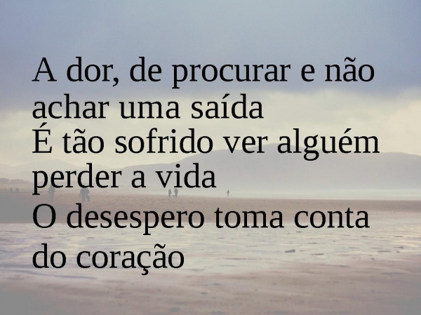 - A dor, de procurar e não achar uma saída É tão sofrido ver alguém perder a vida O desespero toma conta do coração