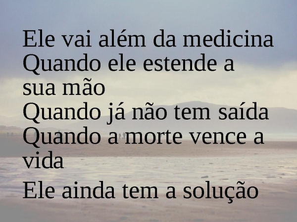 - Ele vai além da medicina Quando ele estende a sua mão Quando já não tem saída Quando a morte vence a vi da Ele ainda tem a solução
