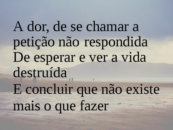 - A dor, de se chamar a petição não respondida De esperar e ver a vida des truída E concluir que não existe mais o que fazer