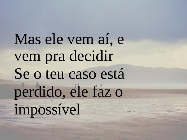 - Mas ele vem aí, e vem pra decidir Se o teu caso está perdido, ele faz o impos sível