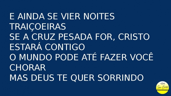 - E ainda se vier noites traiçoeirasSe a cruz pesada for, Cristo estará contigoO mundo pode até fazer você chorarMas Deus te quer sorrindo