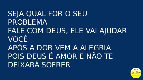 - Seja qual for o seu problemaFale com Deus, ele vai ajudar vocêApós a dor vem a alegriaPois Deus é amor e não te deixará sofrer