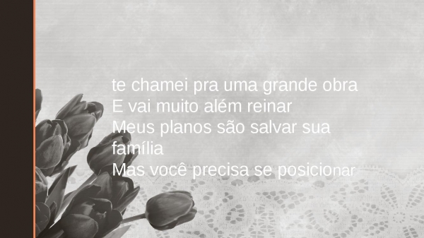 - te chamei pra uma grande obraE vai muito além reinarMeus planos são salvar sua famíliaMas você precisa se posicionar