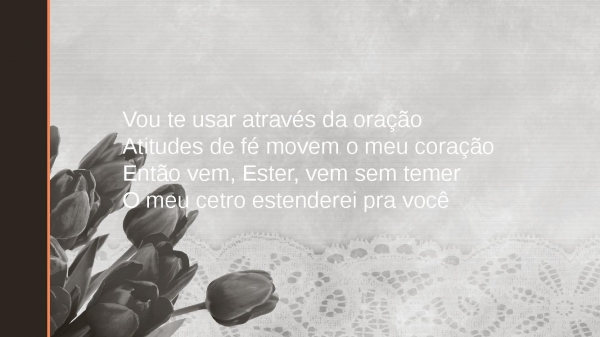 - Vou te usar através da oraçãoAtitudes de fé movem o meu coraçãoEntão vem, Ester, vem sem temerO meu cetro estenderei pra você