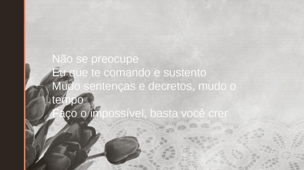 - Não se preocupeEu que te comando e sustentoMudo sentenças e decretos, mudo o tempoFaço o impossível, basta você crer