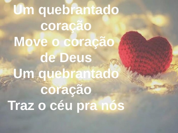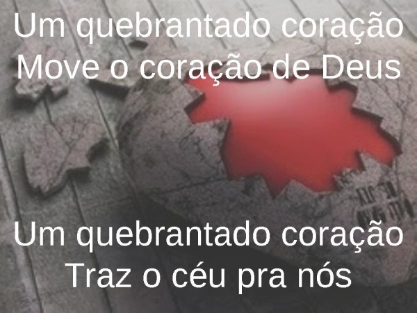 - Um quebrantado coraçãoMove o coração de DeusUm quebrantado coraçãoTraz o céu pra nós