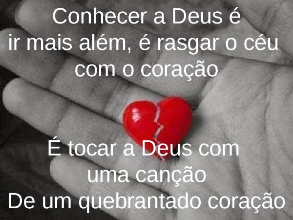 - Conhecer a Deus éir mais além, é rasgar o céu com o coraçãoÉ tocar a Deus com uma cançãoDe um quebrantado coração