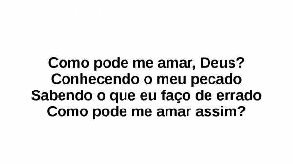- Como pode me amar, Deus?Conhecendo o meu pecadoSabendo o que eu faço de erradoComo pode me amar assim?