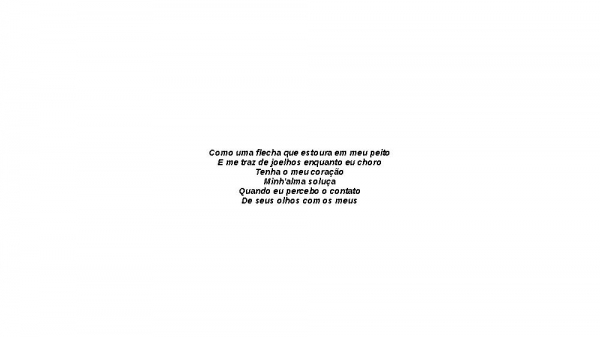 - Como uma flecha que estoura em meu peitoE me traz de joelhos enquanto eu choroTenha o meu coraçãoMinh'alma soluçaQuando eu percebo o contatoDe seus olhos com os meus