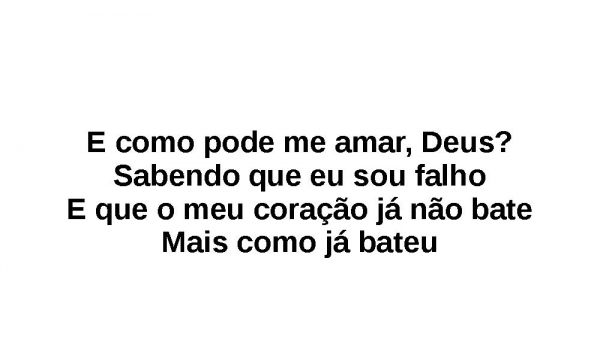 - E como pode me amar, Deus?Sabendo que eu sou falhoE que o meu coração já não bateMais como já bateu