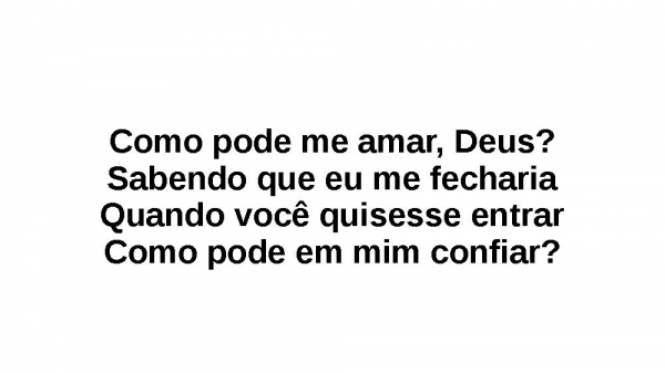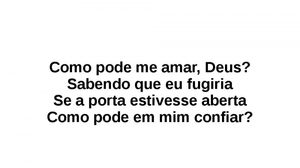 - Como pode me amar, Deus?Sabendo que eu fugiriaSe a porta estivesse abertaComo pode em mim confiar?