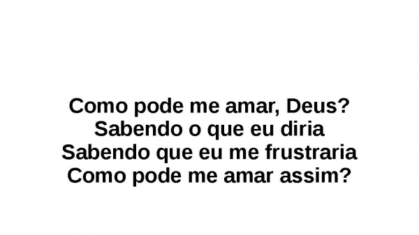 - Como pode me amar, Deus?Sabendo o que eu diriaSabendo que eu me frustrariaComo pode me amar assim?