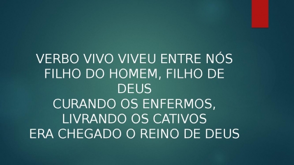 - VERBO VIVO VIVEU ENTRE NÓSFILHO DO HOMEM, FILHO DE DEUSCURANDO OS ENFERMOS, LIVRANDO OS CATIVOSERA CHEGADO O REINO DE DEUS