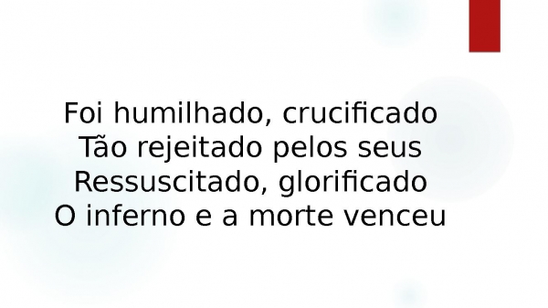 - Foi humilhado, crucificadoTão rejeitado pelos seusRessuscitado, glorificadoO inferno e a morte venceu