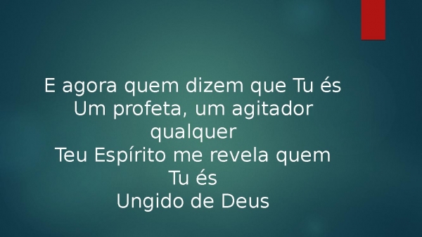 - E agora quem dizem que Tu ésUm profeta, um agitador qualquerTeu Espírito me revela quem Tu ésUngido de Deus