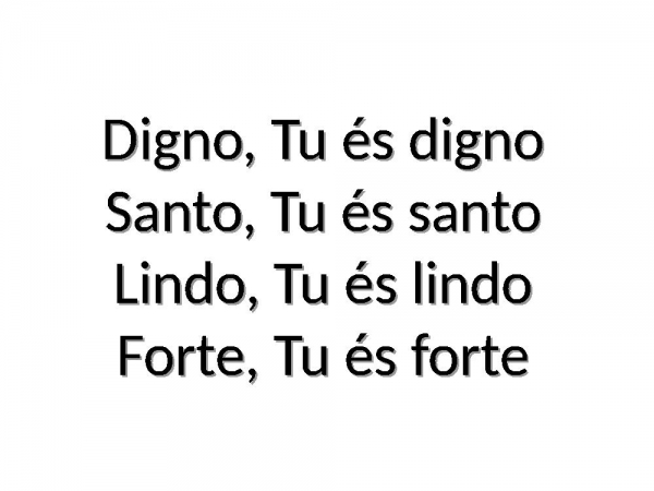 - Digno, Tu és dignoSanto, Tu és santoLindo, Tu és lindoForte, Tu és forte