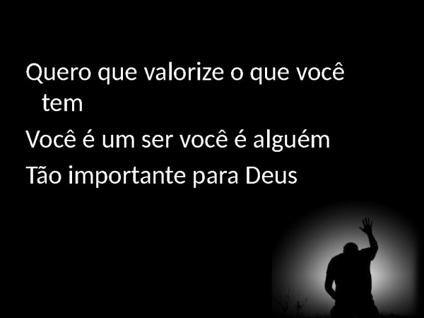 - Quero que valorize o que você temVocê é um ser você é alguémTão importante para Deus