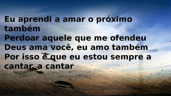 - Eu aprendi a amar o próximo tambémPerdoar aquele que me ofendeuDeus ama você, eu amo tambémPor isso é que eu estou sempre a cantar, a cantar