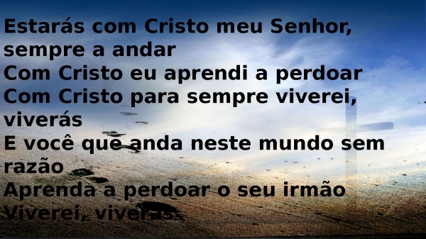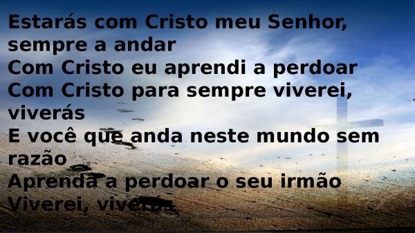 - Estarás com Cristo meu Senhor, sempre a andarCom Cristo eu aprendi a perdoarCom Cristo para sempre viverei, viverásE você que anda neste mundo sem razãoAprenda a perdoar o seu irmãoViverei, viverás
