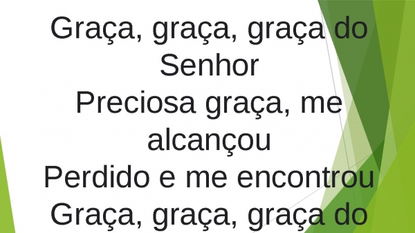 - Graça, graça, graça do SenhorPreciosa graça, me alcançouPerdido e me encontrouGraça, graça, graça do SenhorPreciosa graça, me alcançouPerdido e me encontrou