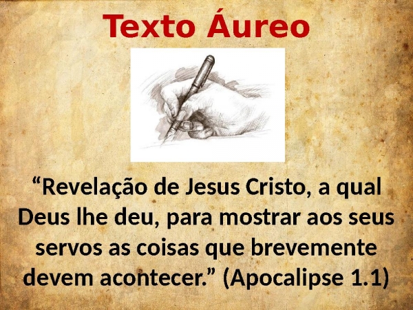 - Texto Áureo“Revelação de Jesus Cristo, a qual Deus lhe deu, para mostrar aos seus servos as coisas que brevemente devem acontecer.” (Apocalipse 1.1)