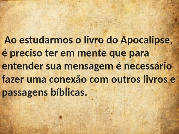 - Ao estudarmos o livro do Apocalipse, é preciso ter em mente que para entender sua mensagem é necessário fazer uma conexão com outros livros e passagens bíblicas.