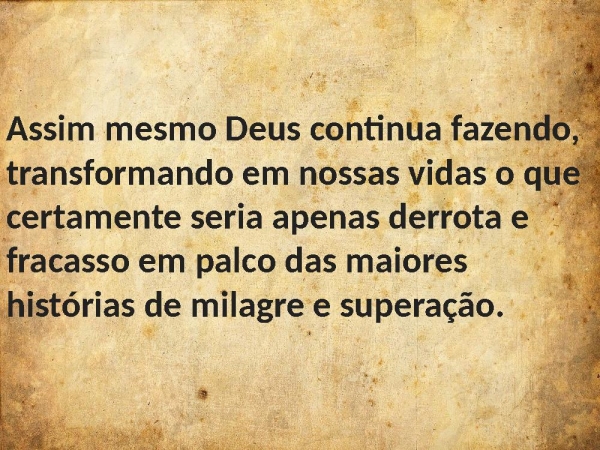 - Assim mesmo Deus continua fazendo, transformando em nossas vidas o que certamente seria apenas derrota e fracasso em palco das maiores histórias de milagre e superação.