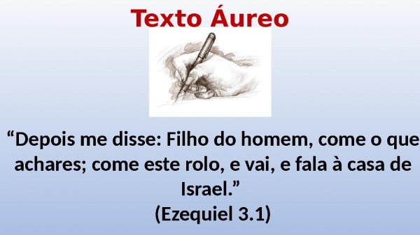 - Texto Áureo“Depois me disse: Filho do homem, come o que achares; come este rolo, e vai, e fala à casa de Israel.” (Ezequiel 3.1)