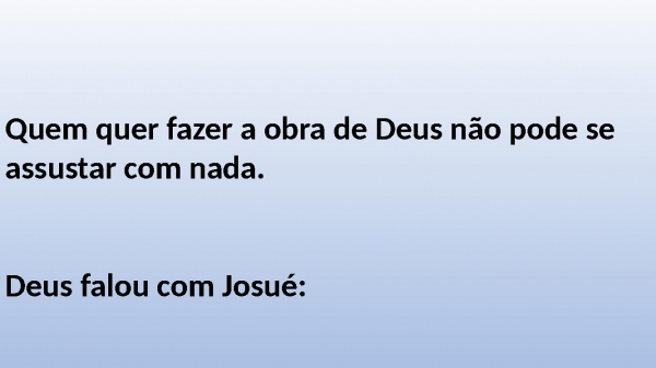 - Quem quer fazer a obra de Deus não pode se assustar com nada. Deus falou com Josué: