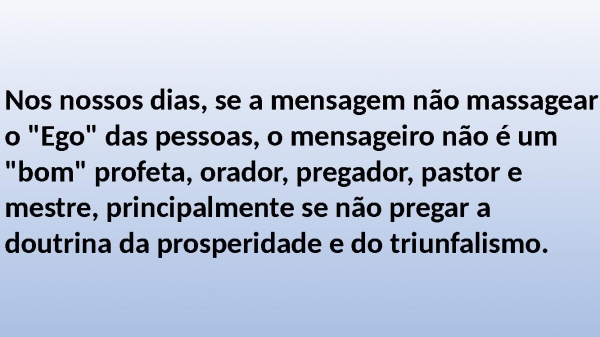 - Nos nossos dias, se a mensagem não massagear o "Ego" das pessoas, o mensageiro não é um "bom" profeta, orador, pregador, pastor e mestre, principalmente se não pregar a doutrina da prosperidade e do triunfalismo.