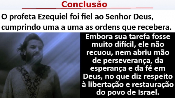- Conclusão O profeta Ezequiel foi fiel ao Senhor Deus, cumprindo uma a uma as ordens que recebera.