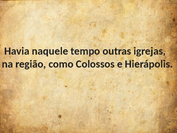 - Havia naquele tempo outras igrejas, na região, como Colossos e Hierápolis.
