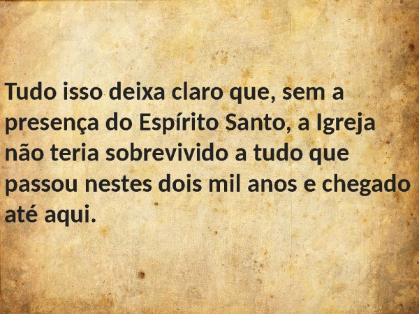 - Tudo isso deixa claro que, sem a presença do Espírito Santo, a Igreja não teria sobrevivido a tudo que passou nestes dois mil anos e chegado até aqui.