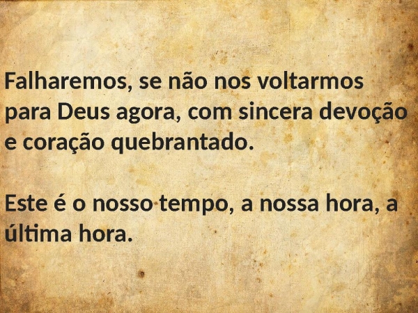 - Falharemos, se não nos voltarmos para Deus agora, com sincera devoção e coração quebrantado. Este é o nosso tempo, a nossa hora, a última hora.