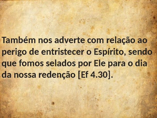 - Também nos adverte com relação ao perigo de entristecer o Espírito, sendo que fomos selados por Ele para o dia da nossa redenção [Ef 4.30].