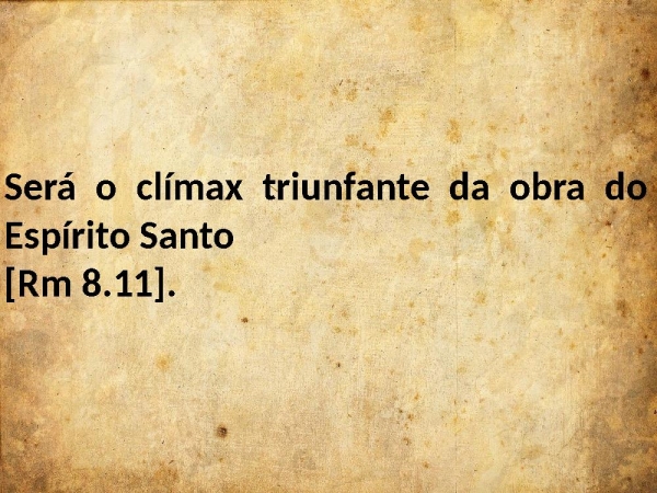 - Será o clímax triunfante da obra do Espírito Santo [Rm 8.11].