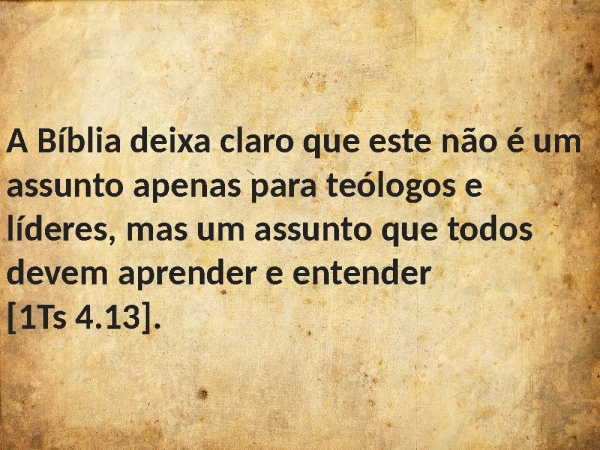 - A Bíblia deixa claro que este não é um assunto apenas para teólogos e líderes, mas um assunto que todos devem aprender e entender [1Ts 4.13].