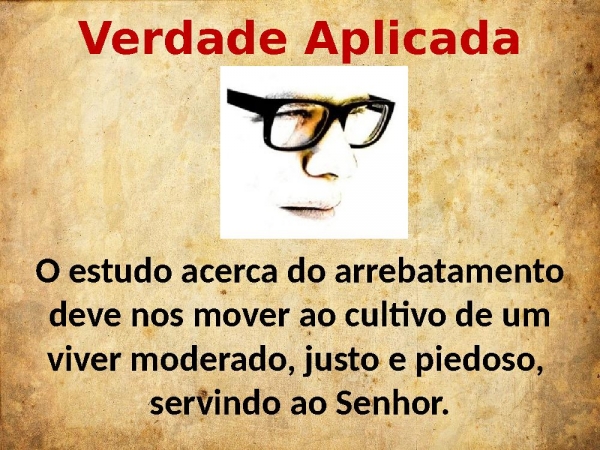 - Verdade AplicadaO estudo acerca do arrebatamento deve nos mover ao cultivo de um viver moderado, justo e piedoso, servindo ao Senhor.