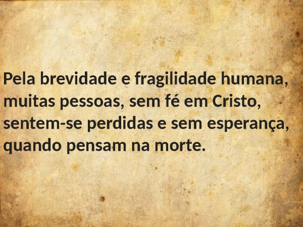 - Pela brevidade e fragilidade humana, muitas pessoas, sem fé em Cristo, sentem-se perdidas e sem esperança, quando pensam na morte.
