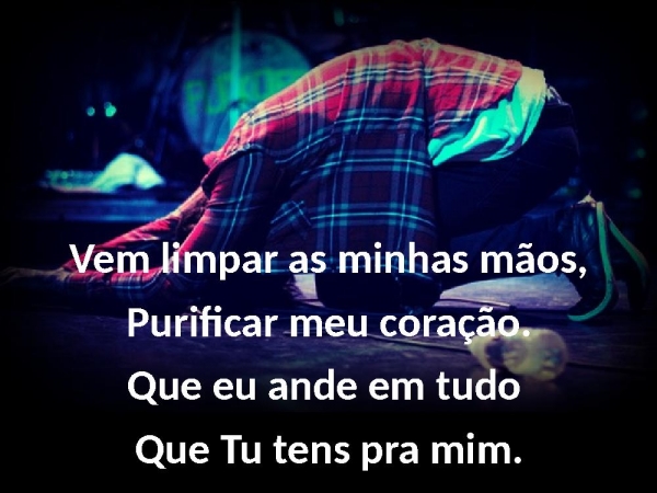- Vem limpar as minhas mãos,Purificar meu coração.Que eu ande em tudo Que Tu tens pra mim.